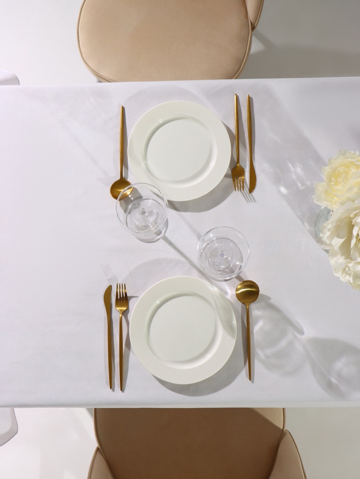 - Сдержанный размер 110×140 см для небольших обеденных столов.