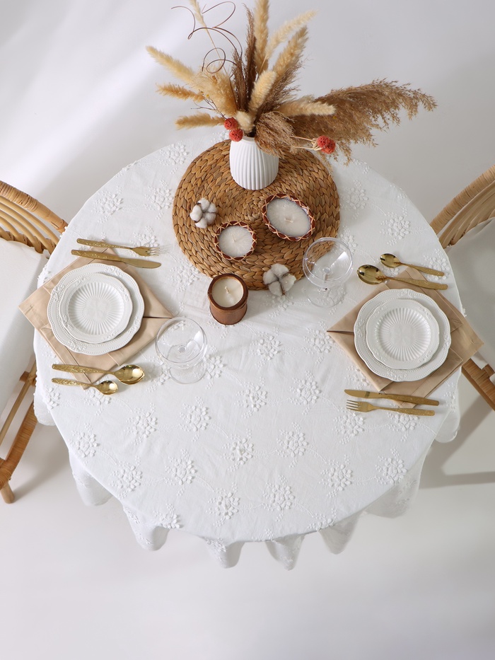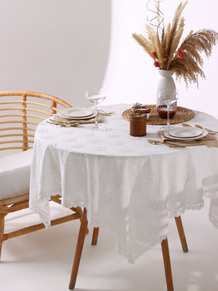 - Квадратный формат 140×140 см подходит для квадратных и круглях столов.