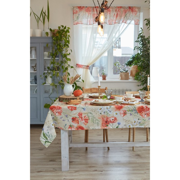 Скатерть Маки 180×147 см, 100% хлопок, рогожка 160 г/м²