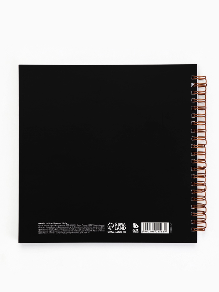 Технические характеристики Скетчбук 20х20 см. 50 л, 190 гр