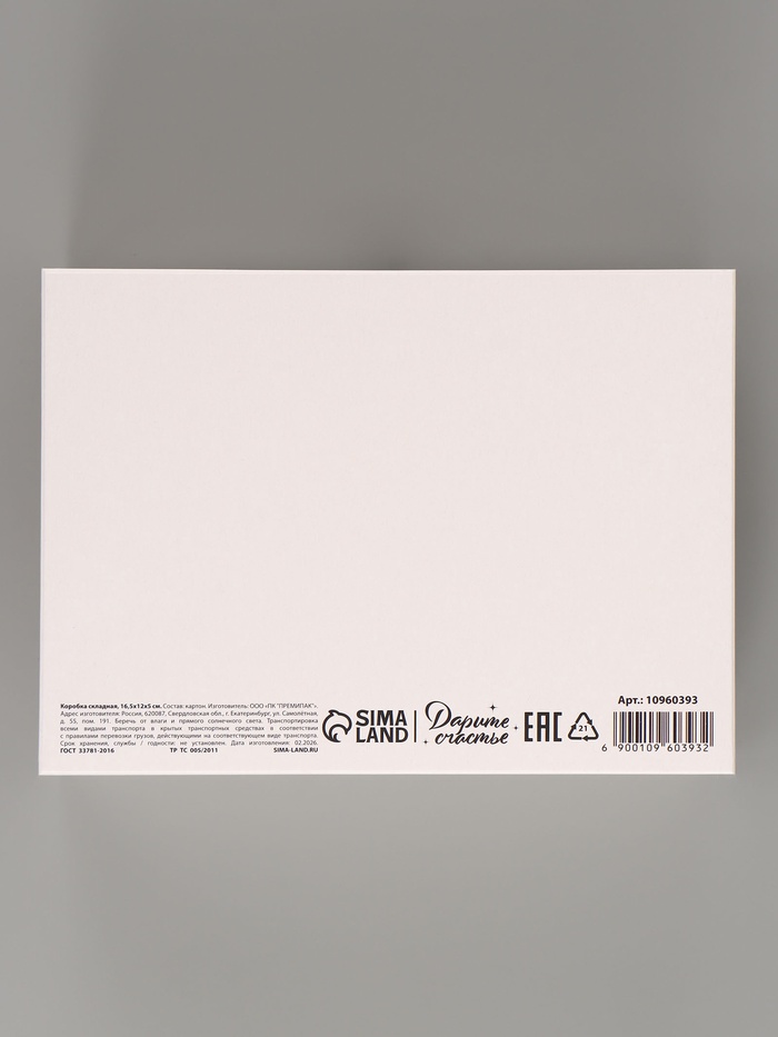 | Количество товара в упаковке1 | Количество товара, помещяющегося в бокс275 | Материалкартон |