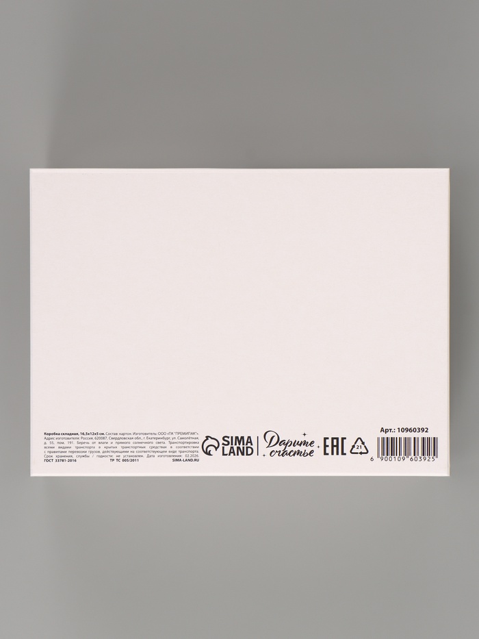 | Количество товара в упаковке1 | Количество товара, помещяющегося в бокс275 | Материалкартон |