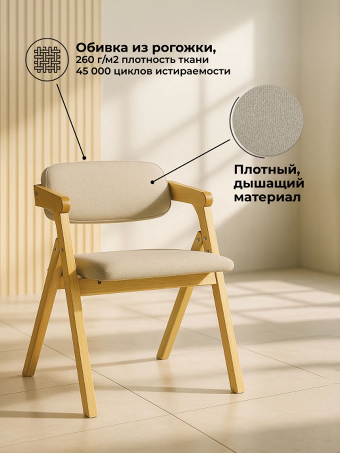 - Мягкое сидение: тканевая обивка обеспечивает комфорт во время длительных обедов и дружеских посиделок.