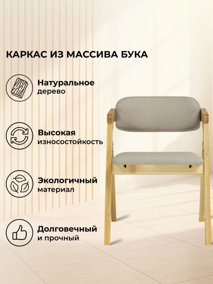 Практичный и стильный складной стул для кухни, столовой, гостиной или дачи. Модель выполнена в тёплом сочетании цветов: благородный оттенок кофе и натуральный бук создают уютный и природный образ, наполняющий интерьер теплом и естественной красотой. Складная конструкция позволяет легко и компактно хранить стул, когда он не нужен, что особенно ценно для небольших помещений. Надёжный деревянный каркас из бука обеспечивает устойчивость и долговечность, выдерживая нагрузку до 100 кг.