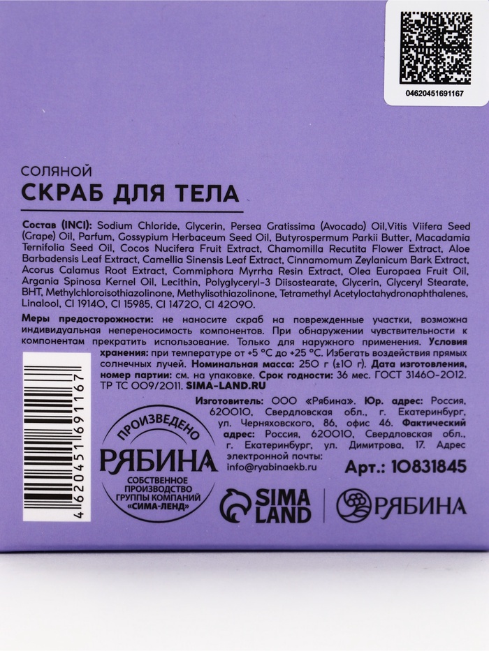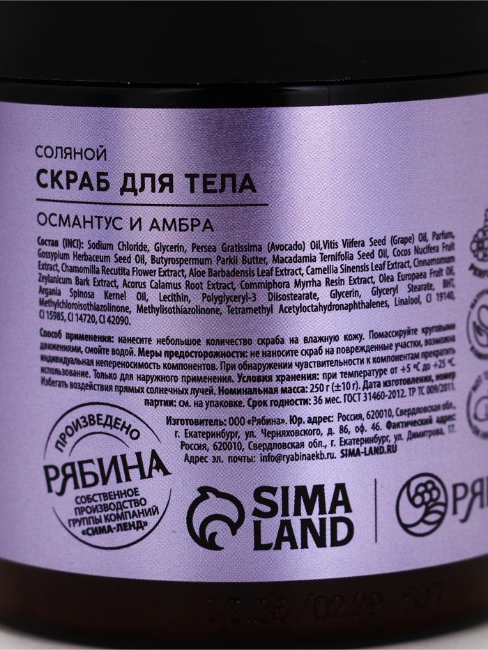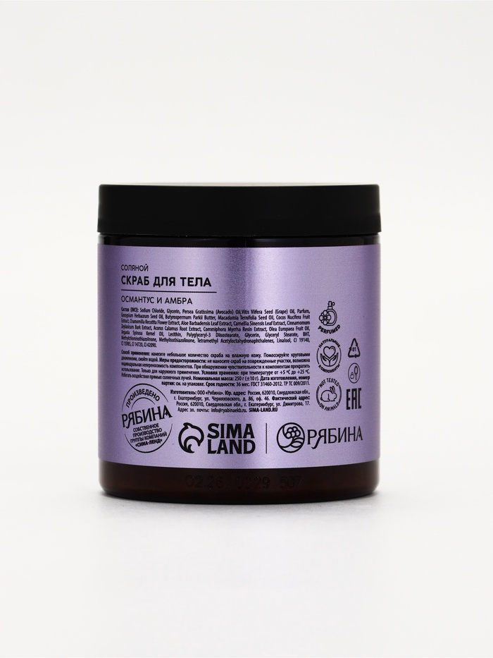 Технические характеристики Скраб для тела парфюмированный, аромат «Османтус и амбра», 250 г, laPOETIQUE