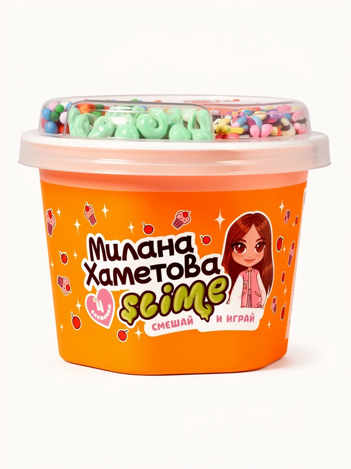 Слайм "Милана Хаметова. Смешай и играй", 4 вложения, оранжевый, Slime SLM319