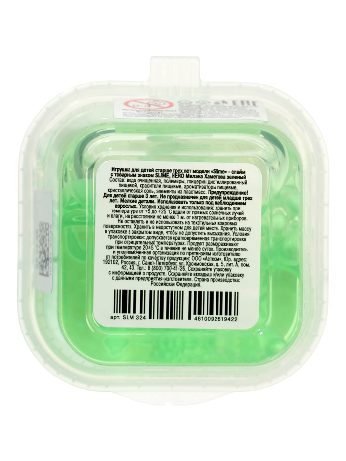 Технические характеристики Слайм "Милана Хаметова зеленый", Slime HERO SLM324