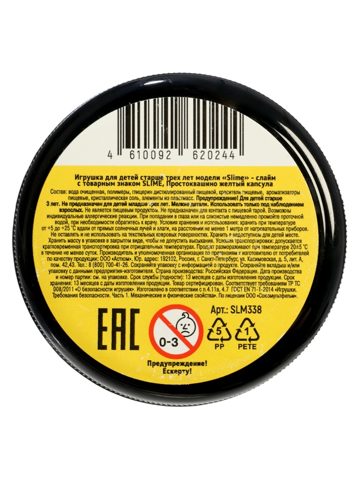 Технические характеристики Слайм "Простоквашино", желтый, капсула 130 г. Slime SLM338