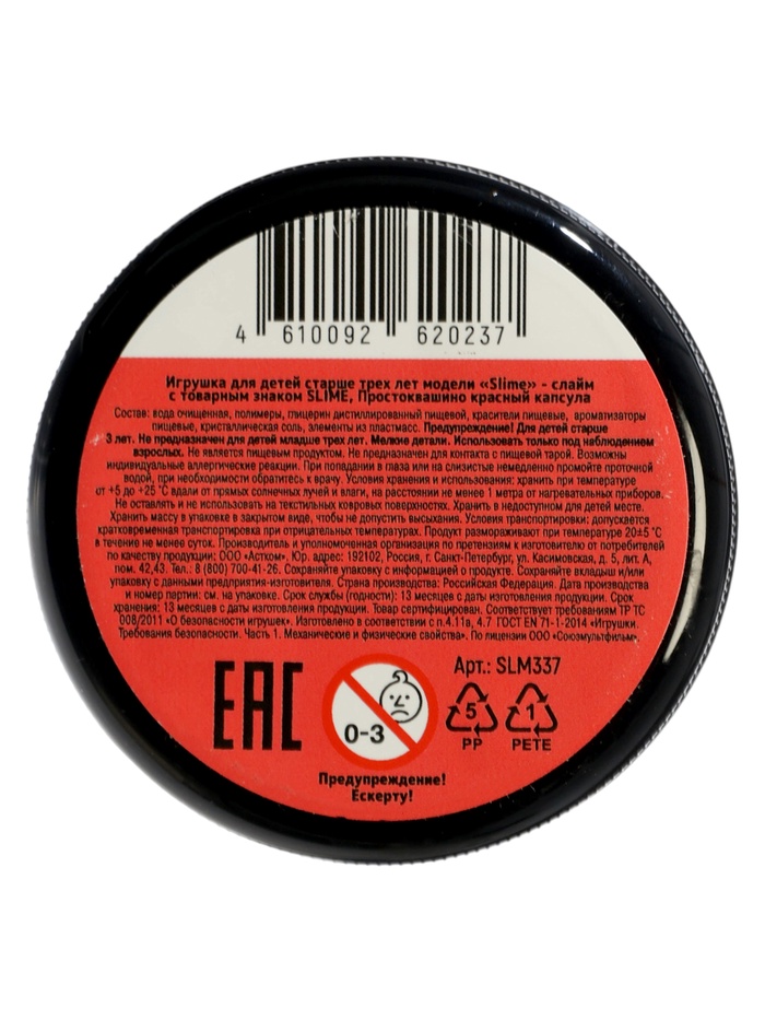 Технические характеристики Слайм "Простоквашино", красный, капсула 130 г. Slime SLM337