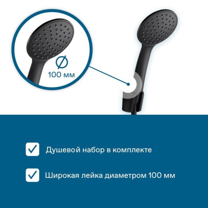 - душевой набор в комплекте: лейка ø100 мм;