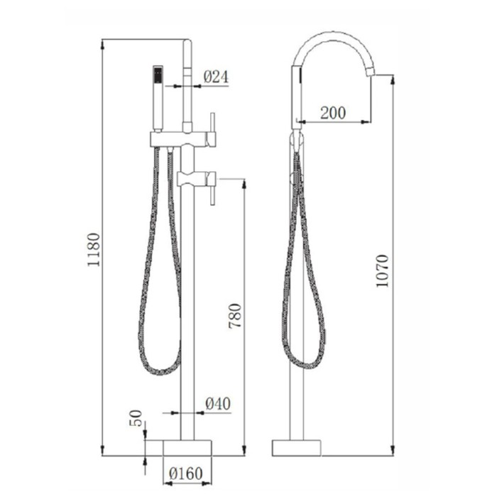 Технические характеристики Смеситель напольный для ванны Comforty FE018M-CMT, цвет чёрный матовый