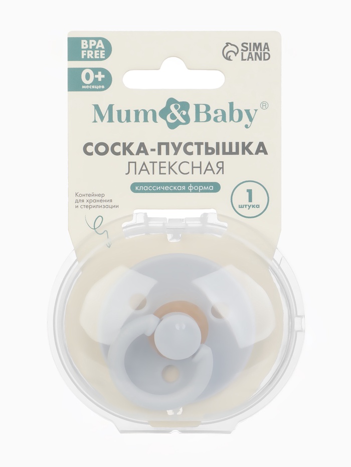 Технические характеристики Соска-пустышка, от 0 мес., латекс, классическая, в контейнере, серый, M&B