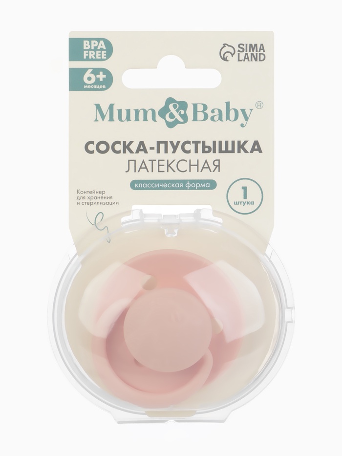 Технические характеристики Соска-пустышка, от 6 мес., латекс, классическая, в контейнере, персиковый, M&B