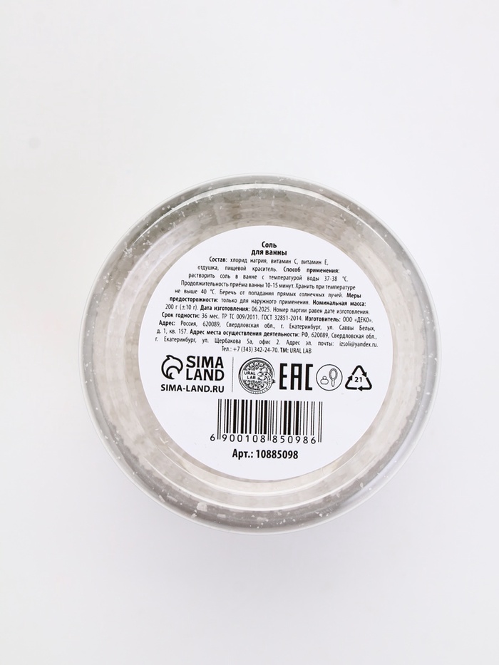 Технические характеристики Соль для ванны с ароматом яблочного пунша, 200 г, URAL LAB