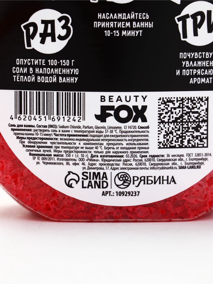 Технические характеристики Соль для ванны «Котел расслабления », 350 г, Beauty Fox