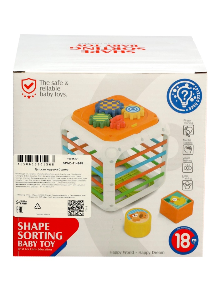 Сортер помогает развивать мелкую моторику, координацию движений и логическое мышление. Ребёнок учится сопоставлять формы, тренирует пальчики и изучает причинно-следственные связи через игру.