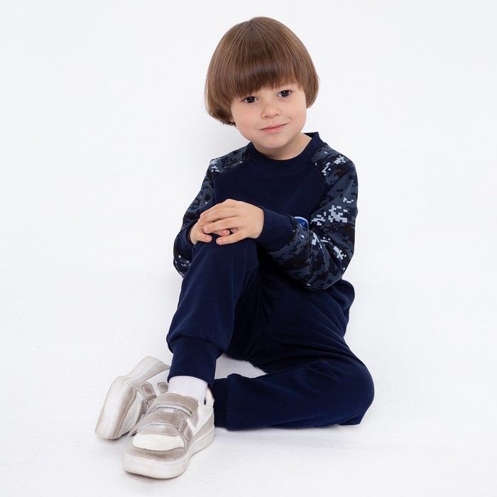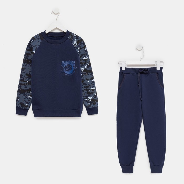 Спортивный костюм (толстовка, брюки) для мальчика, цвет синий камуфляж/тёмно-синий, рост 146 см (40)