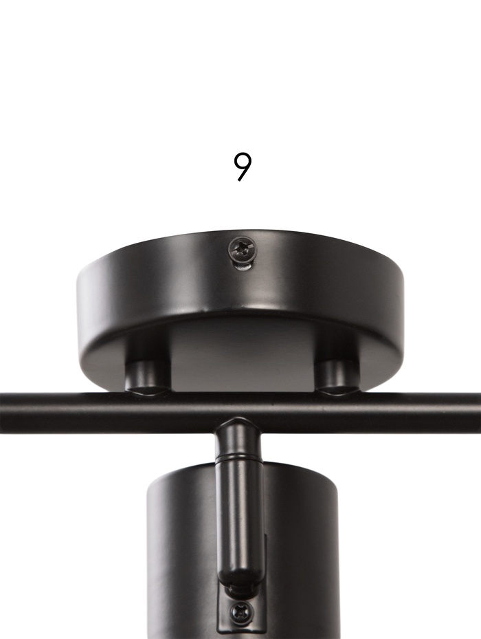 Потолочный спот с тремя направляемыми плафонами обеспечивает гибкое распределение света, позволяя одновременно организовать общее освещение и акцентную подсветку. Цилиндрическая форма рассеивателей формирует направленный световой поток, удобный для выделения отдельных зон и деталей интерьера.