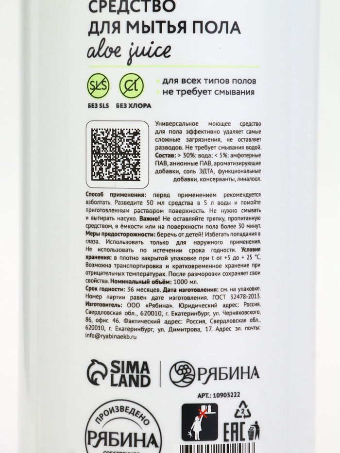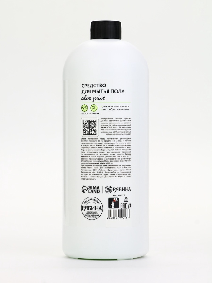 Технические характеристики Средство для мытья пола, аромат мякоть алоэ, 1000 мл, ULAB