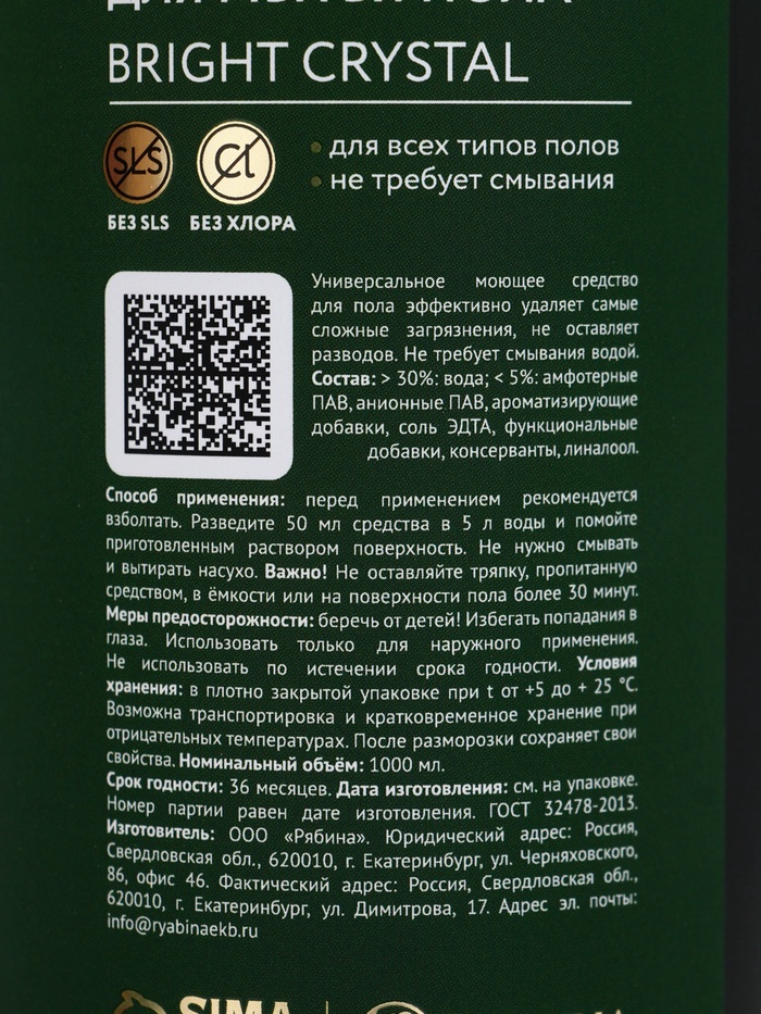 Технические характеристики Средство для мытья пола парфюмированное, аромат Bright crystal, 1000 мл, ULAB