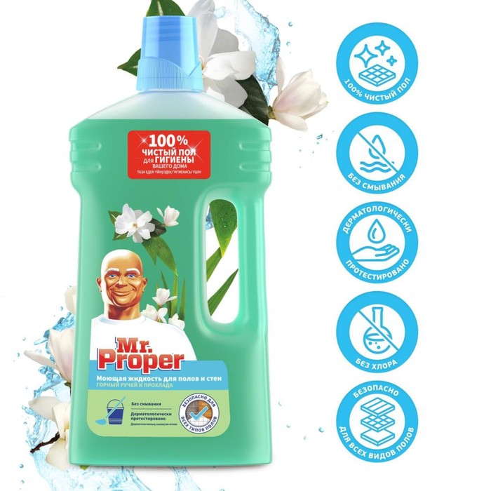 Средство для мытья полов и стен Mr.Proper "Горный ручей и прохлада", 1 л