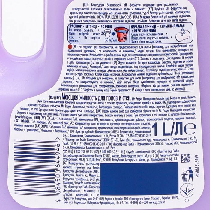Mr. Proper «Лавандовое спокойствие», 1 л — это практичное и эффективное решение для поддержания чистоты в доме, которое сочетает мощное очищение и приятный расслабляющий аромат.