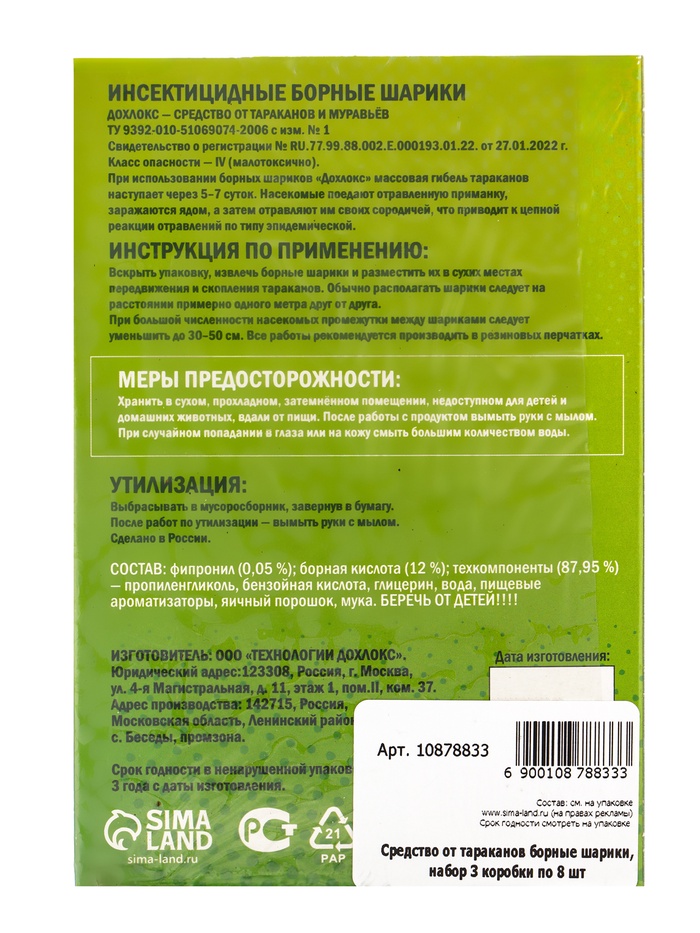 Технические характеристики Средство от тараканов SAFEX, борные шарики, набор, 3 коробки по 8 шт.