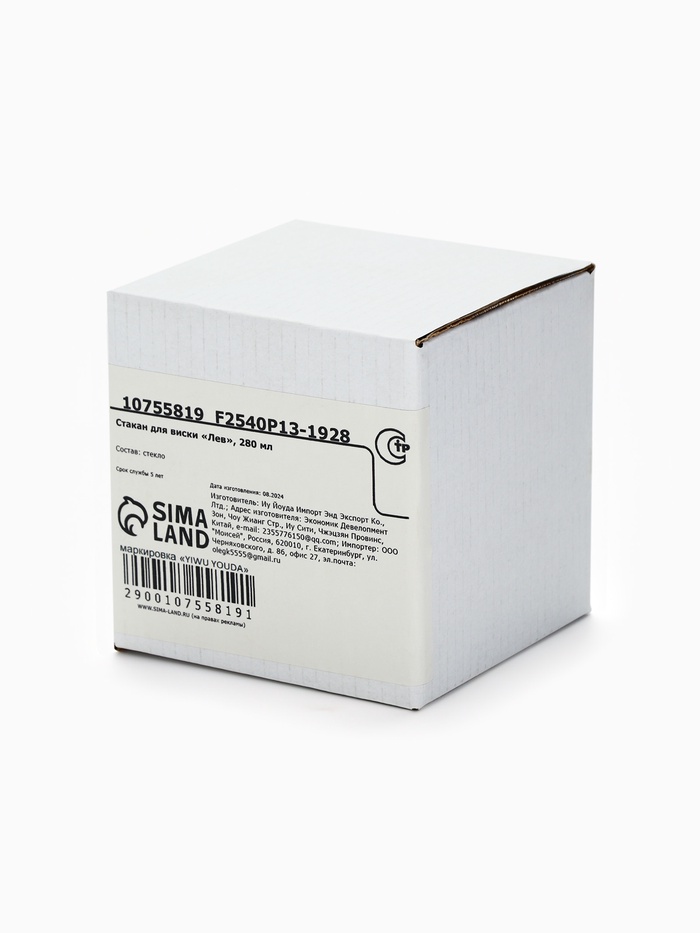 Технические характеристики Стакан для виски стеклянный «Лев», 280 мл