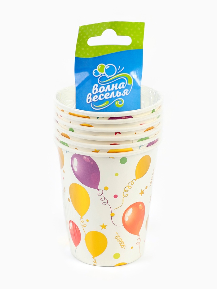 Стакан одноразовый бумажный «Воздушные шарики», 250 мл, 6 шт.