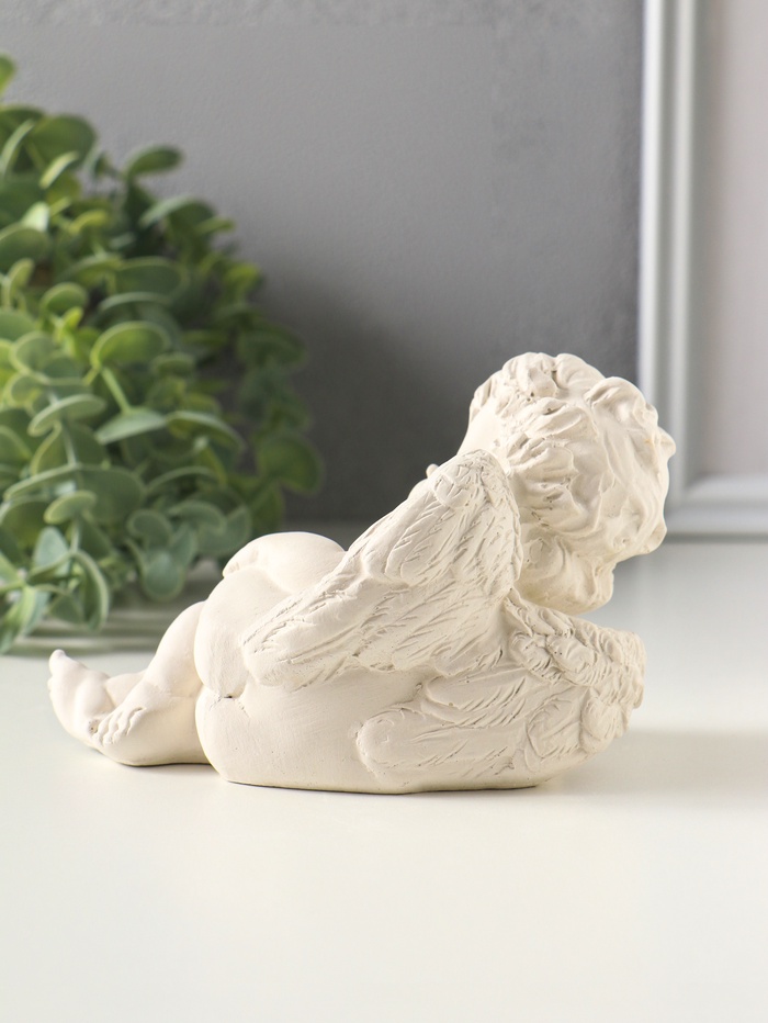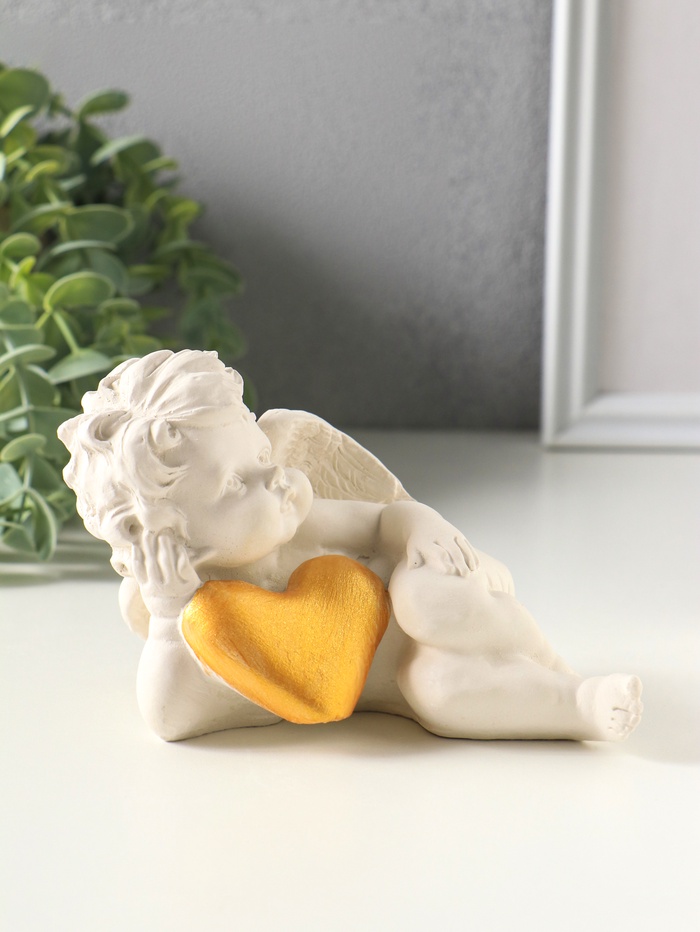 Фигурка гипс «Ангел с сердцем лежит», 8×12×7 см, белая с золотом