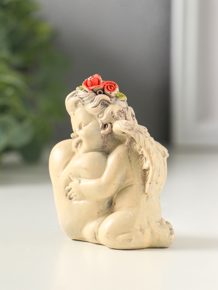 Фигурка гипс «Ангелок с сердцем», 7 см, слоновая кость