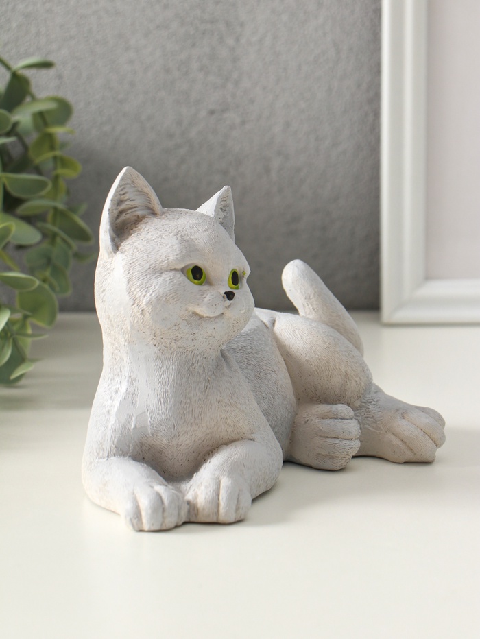 Фигурка «Кошка лежит», 13×17×12 см, гипс, серый