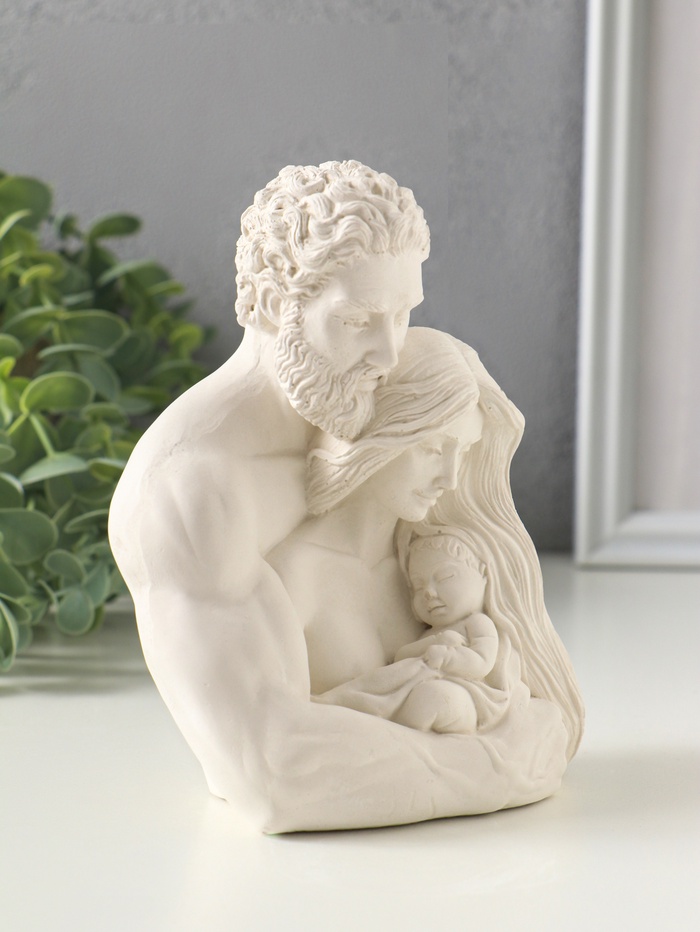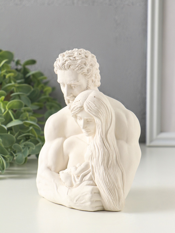 Белая гипсовая фигурка семьи — это тёплый символ вашего домашнего очага. Композиция из пары с ребёнком на руках станет зримым воплощением любви и единства, напоминая о самом главном. Её лаконичная форма и чистый цвет создают ощущение спокойствия и гармонии, делая образ вневременным и близким каждому.
