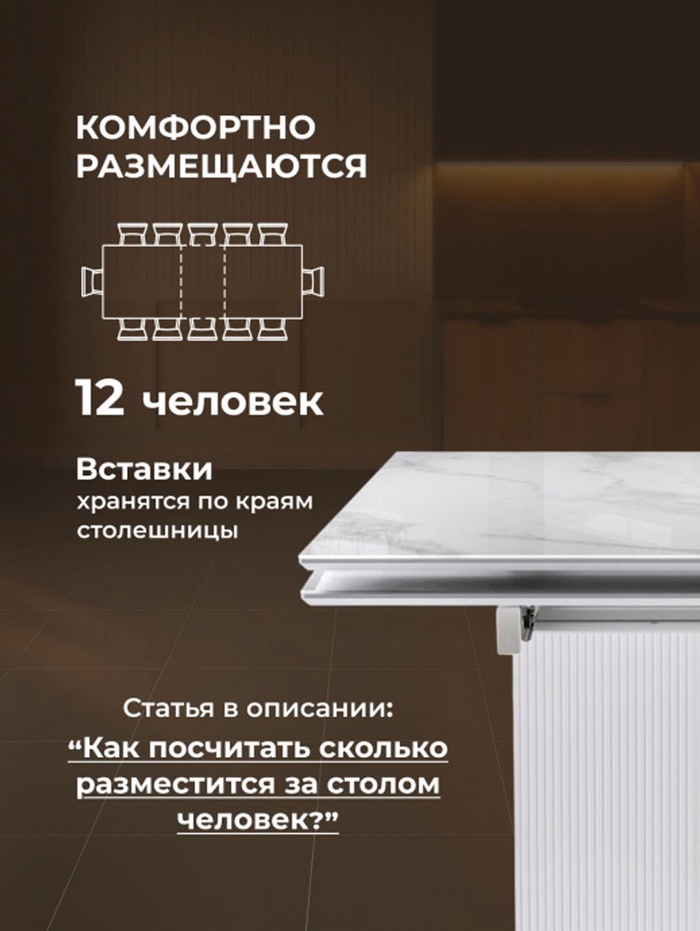 - Для столовой: элегантный дизайн с эффектом белого мрамора добавляет интерьеру премиальности и лёгкости.