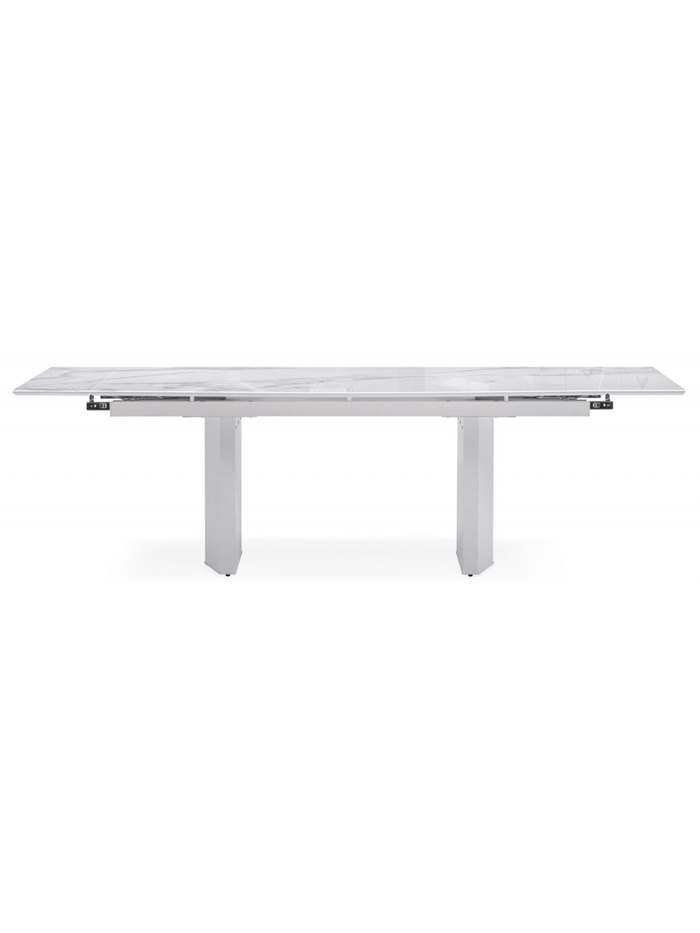 Стол кухонный стеклянный раздвижной «Монерон», 2000(2600)×1000×770 мм, цвет белый мрамор/белый