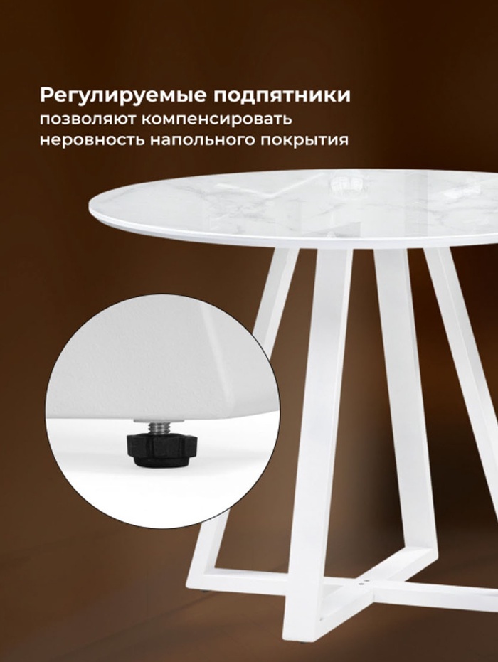 Технические характеристики Стол кухонный стеклянный круглый «Норфолк 100», 1000×1000×780 мм, цвет мрамор белый/белый