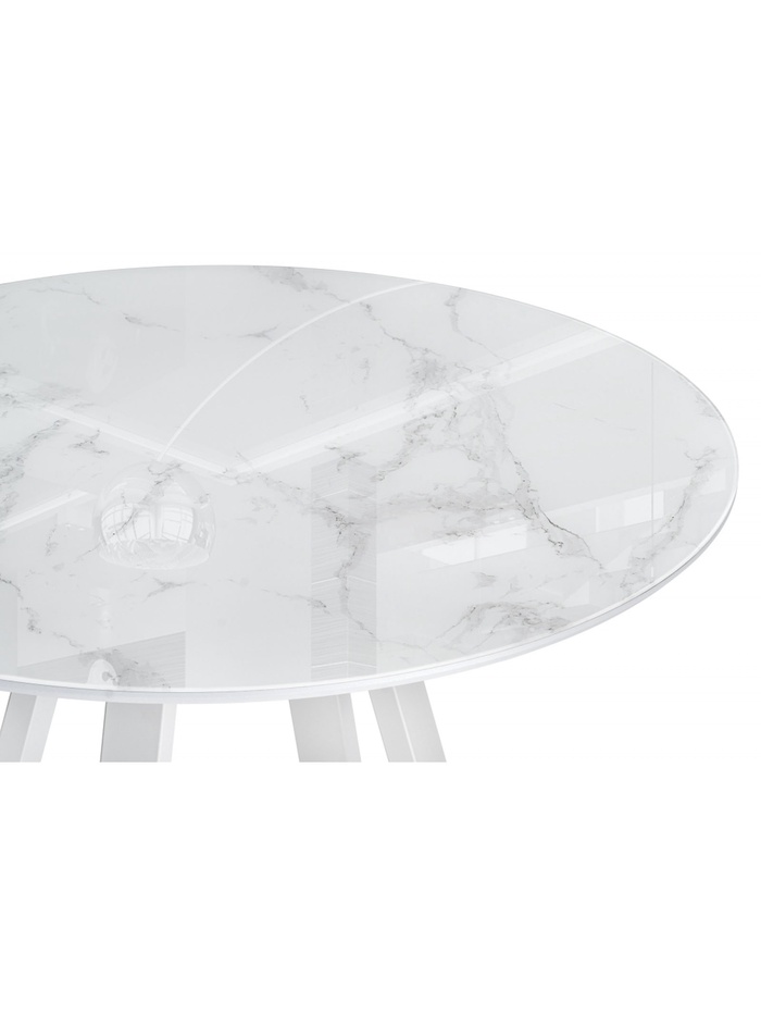 Стол кухонный стеклянный круглый «Норфолк 100», 1000×1000×780 мм, цвет мрамор белый/белый