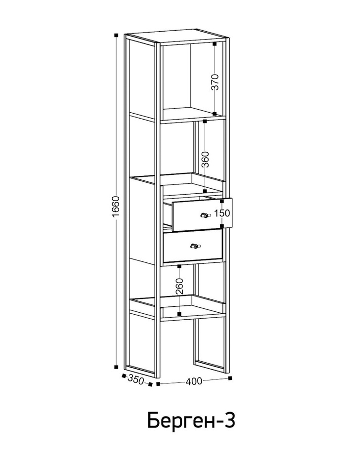Технические характеристики Стеллаж Берген-3 дуб крафт золотой / черный