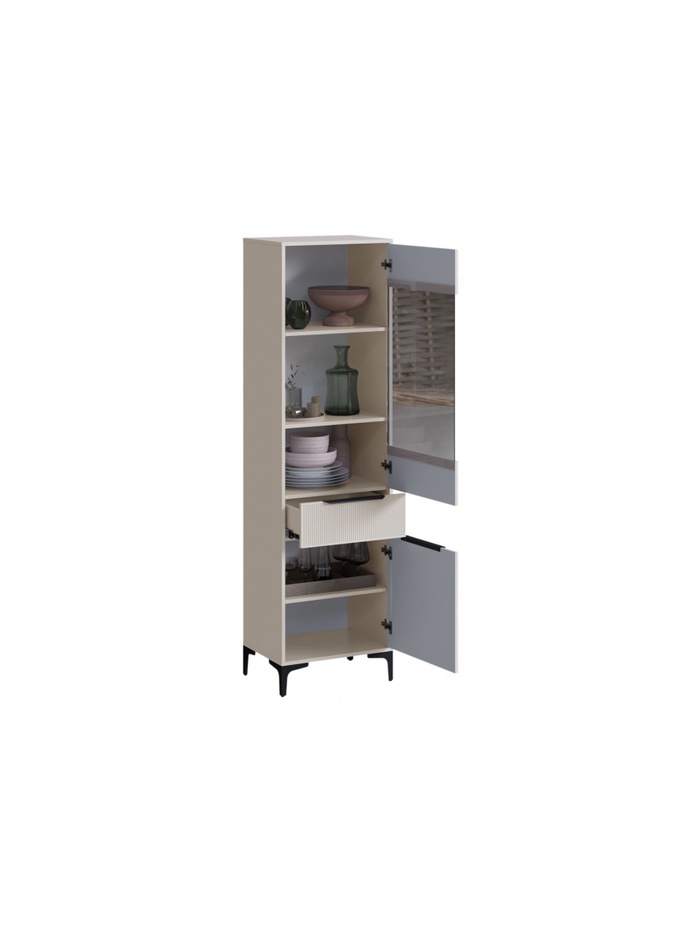 Элегантное и функциональное решение для организации хранения в современном интерьере. Стеллаж выполнен в благородном оттенке кашемир, который придаёт мебели мягкость, теплоту и визуальный комфорт. Изысканная фрезеровка на фасадах добавляет фактурности и делает стеллаж не просто местом хранения, а самостоятельным декоративным элементом.