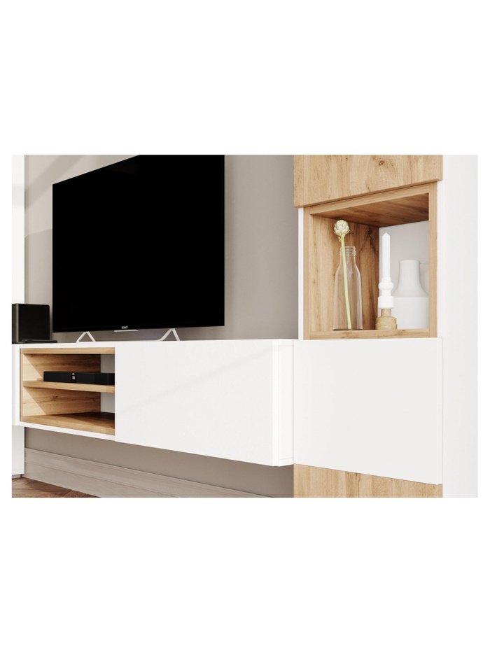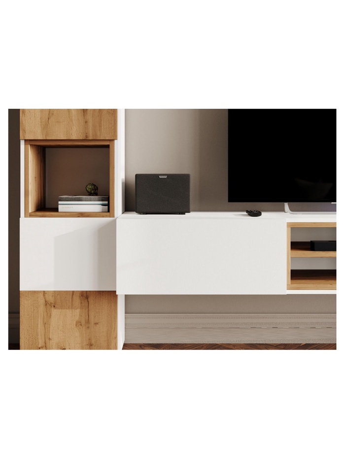 - Гармоничный дизайн: сочетание чистого белого и тёплой текстуры дуба вотан создаёт элегантный и уютный образ, который органично впишется в интерьер в стиле скандинавский, минимализм или современная классика.