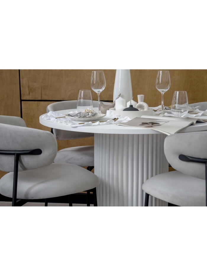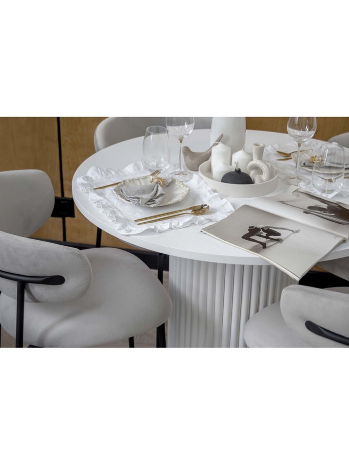 - Для столовой: круглая форма и светлый дизайн добавляют интерьеру лёгкости и уюта.