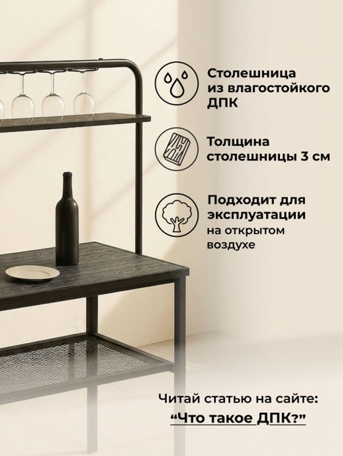 Технические характеристики Стол барный «Сари», 1250×500×1680 мм, цвет графит/чёрный