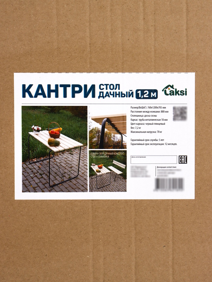 Технические характеристики Стол садовый «Кантри», 120×76×70.5 см, деревянный, для дачи
