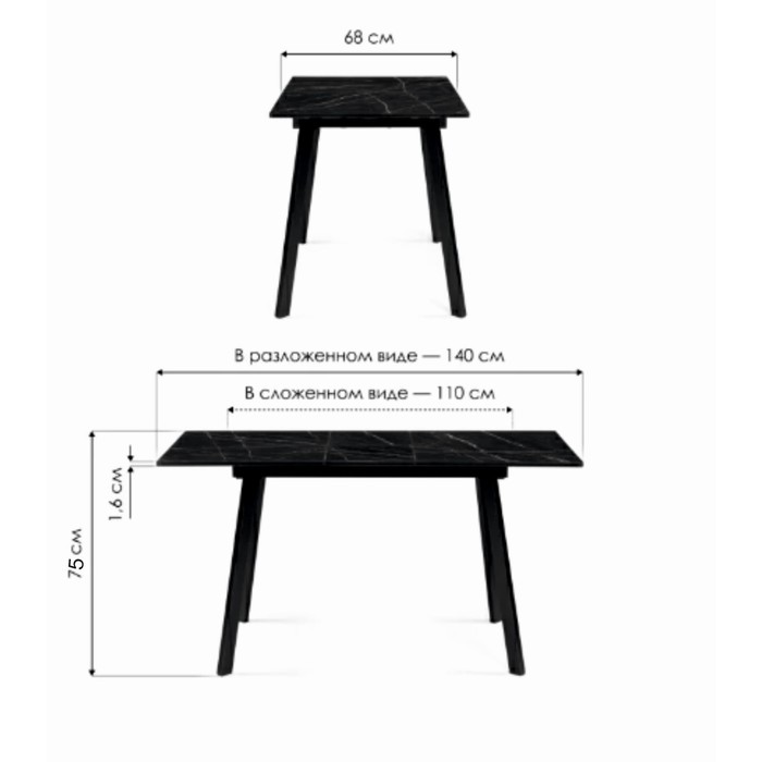 Технические характеристики Стол стеклянный Агни металл, мрамор белый/черный матовый 68x110x75 см