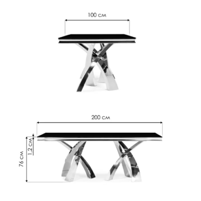 Технические характеристики Стол стеклянный Komin 2 металл, черный/золотой 100x200x76 см