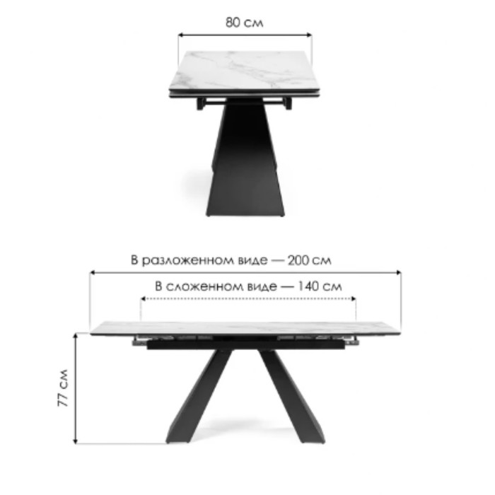 Технические характеристики Стол стеклянный Торвальд металл, обсидиан/черный 80x140x77 см