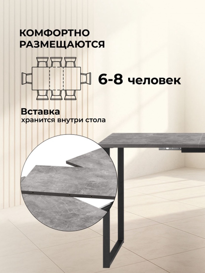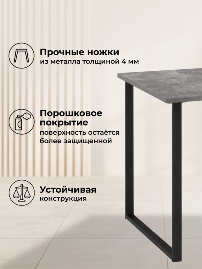 Технические характеристики Стол кухонный деревянный раздвижной «Лиман», 1170(1570)×770×750 мм, цвет бетон светлый/чёрный матовый