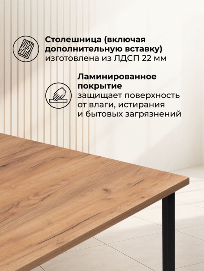 Технические характеристики Стол кухонный деревянный «Лиман», 1400×800×750 мм, цвет дуб крафт золотой/чёрный матовый