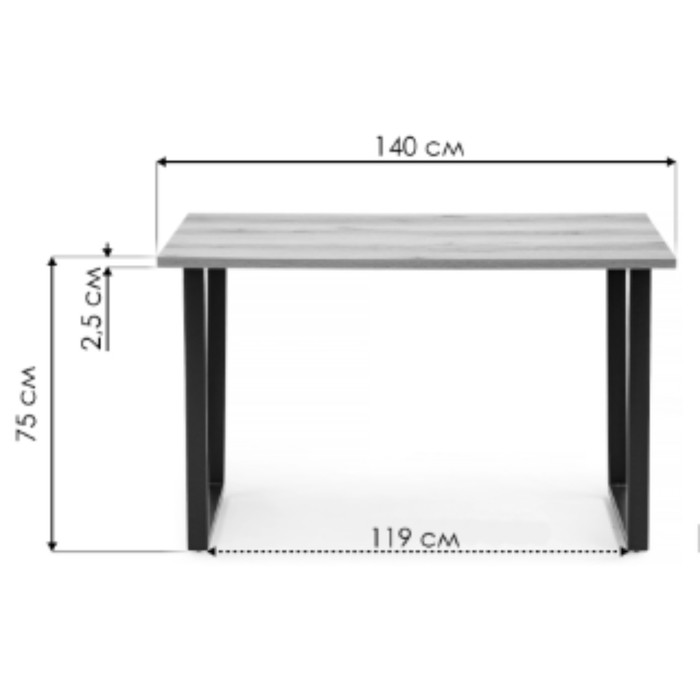 Технические характеристики Стол деревянный Лота Лофт металл, дуб вотан/черный 80x140x75 см