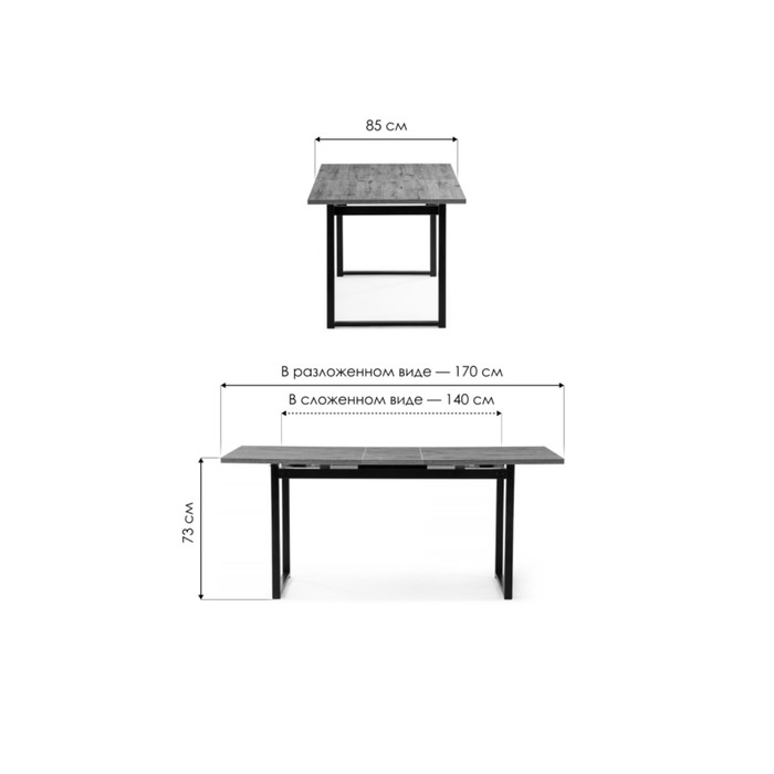 Технические характеристики Стол деревянный Макта металл, дуб велингтон/черный 85x140x73 см